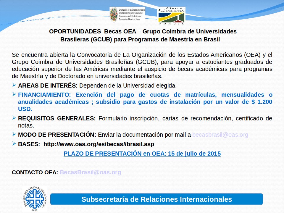 El plazo de presentación para la UNComahue es del 2 al 11 de Marzo de 2015. El período de ejecución se extiende desde septiembre de 2015 a Julio de 2016 (inclusive). El modo de presentación contempla la entrega de la postulación en la oficina de la Subsecretaria de Relaciones Internacionales, teniendo en cuenta los plazos de cierre para la UNComahue.