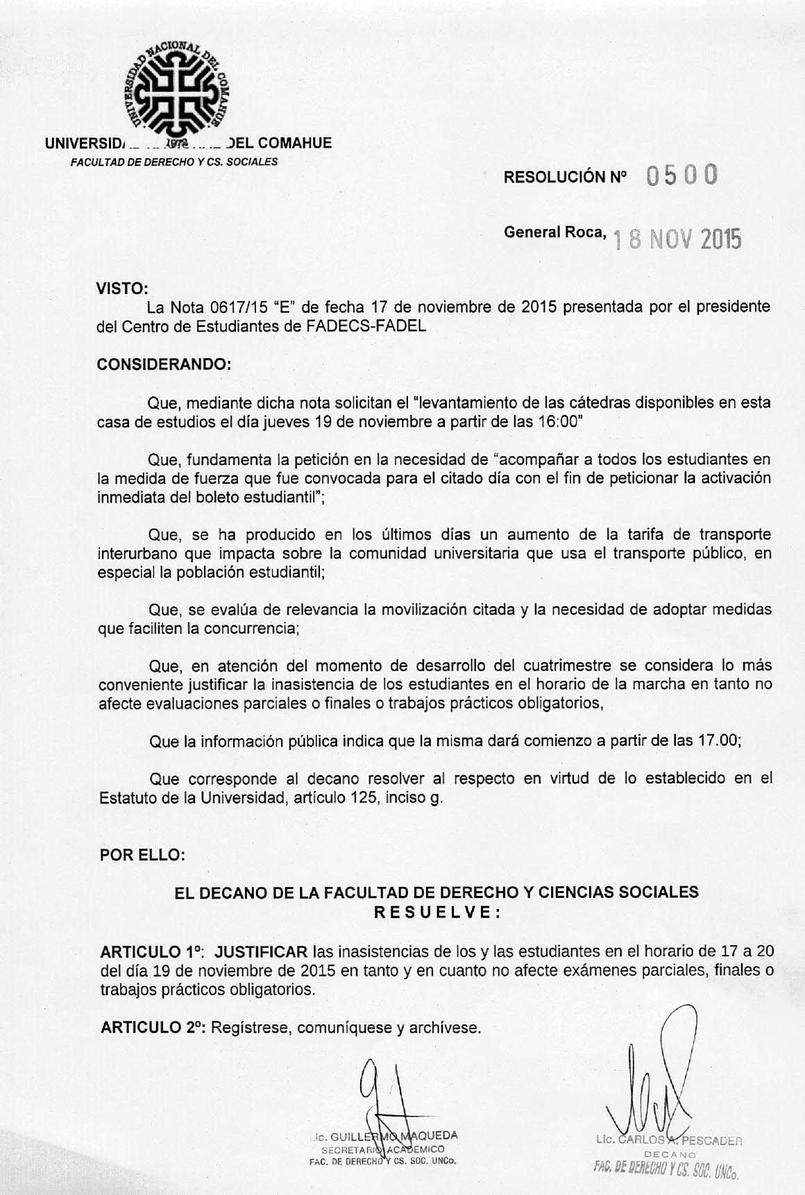 El decano de la Facultad de Derecho y Ciencias Sociales, ad referéndum del Consejo Directivo, resolvió aprobar el calendario académico de la casa de altos estudios, en lo que respecta a las actividades programadas para el inicio del 2016. Se adjunta Resolución número 0350/2015.