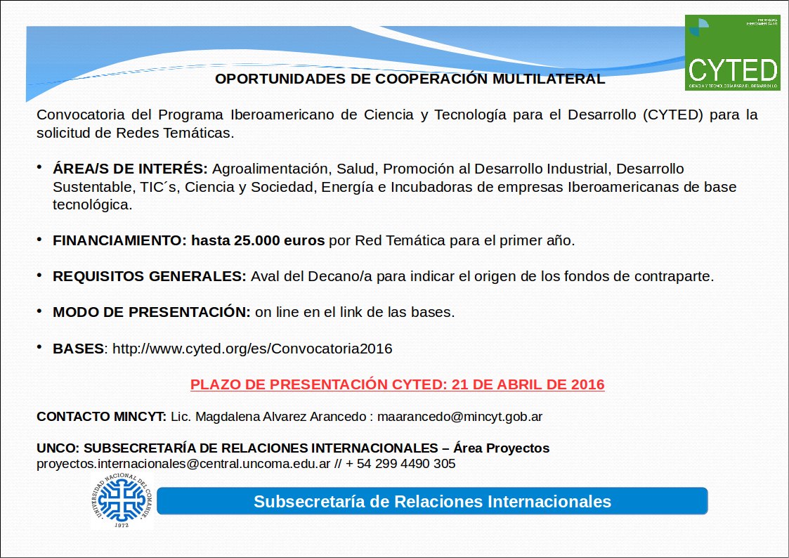 Fechas importantes a tener en cuenta: (Comunicado emitido por la Subsecretaría de Relaciones Internacionales de la UNCo) |
