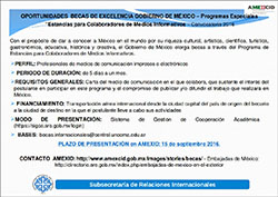 El Ministerio de asuntos exteriores y europeos (MAEE), el Ministerio de la Educación Nacional, la Enseñanza Superior y de la Investigación (MEN-ESR) y la Fondation Maison des Sciences de l’Homme, pusieron en marcha un programa regional de cooperación universitaria con América Latina y el Caribe, destinado a mejorar la movilidad exclusivamente del personal docente. Área/s de interés: Agronomía y ecología; Ciencias físicas y químicas; Ciencias humanas; Ciencias de la salud, medicina, biología humana; Matemáticas; Ciencias de la tierra, del universo y del espacio; Sociología; Información y comunicación; Ingeniería. Financiamiento: hasta 25.000 euros para movilidad de docentes entre Francia y América Latina. Requisitos generales: Aval del Decano/a para indicar el origen de los fondos de contraparte. Modo de presentación: a través del socio francés. Por vía electrónica utilizando el documento “Formulario de candidatura”, en la sección “Documentos administrativos”. (http://www.prefalc.msh-paris.fr/spip.php?article93) y un ejemplar impreso a: PREFALC - Fondation Maison des Sciences de l’Homme - 190, avenue de France - CS N° 71345 - 75648 Paris cedex 13 Bases: http://www.prefalc.msh-paris.fr/spip.php?article93 Contacto PREFALC: Nelson Vallejo-Gomez: nvallejog@msh-paris.fr; Bénédicte Rastier: brastier@msh-paris.fr UNCo: Subsecretaría de Relaciones Internacionales – Área Proyectos: proyectos.internacionales@central.uncoma.edu.ar // + 54 299 4490 305 |