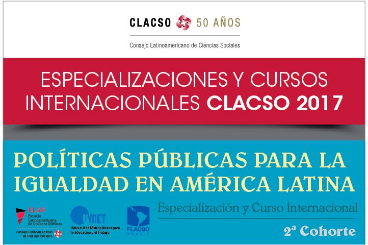 POLÍTICAS PÚBLICAS PARA LA IGUALDAD EN AMÉRICA LATINA • Coordinación: Pablo Gentili (Argentina) y Nicolás Trotta (Argentina) • Clases magistrales y seminarios especiales:José Pepe Mujica (Uruguay) / Theotônio dos Santos (Brasil) / Boaventura de Sousa Santos (Portugal) / Eugenio Raúl Zaffaroni(Argentina) / Juan Carlos Monedero(España) / Karina Batthyany (Uruguay) /Laura Tavares (Brasil) / Nilcéa Freire (Brasil) /Paulo Vanucchi(Brasil) / Roberto Rodríguez Meléndez (El Salvador) / Valeria Llobet (Argentina) /Adriana Puiggrós(Argentina) Abierta la inscripción hasta el 5 de marzo de 2017