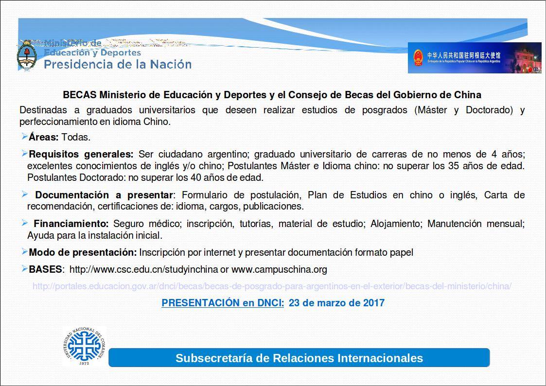 BECAS MINISTERIO DE EDUCACIÓN Y DEPORTES Y EL CONSEJO DE BECAS DEL GOBIERNO DE CHINA