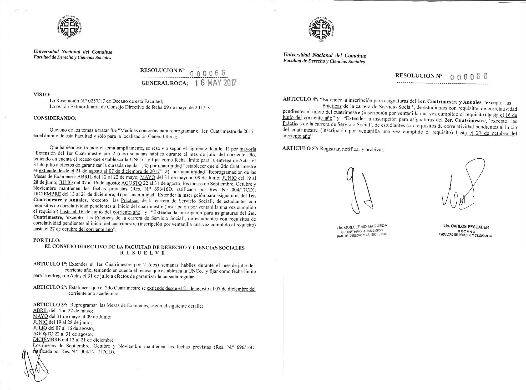 Se informa que está abierto el período de inscripciones a las carreras que se dictan en la Facultad de Derecho y Ciencias Sociales de la Universidad Nacional del Comahue con asiento en General Roca. Los interesados deberán preinscribirse en forma Obligatoria en el sitio http://preinscripcion.uncoma.edu.ar