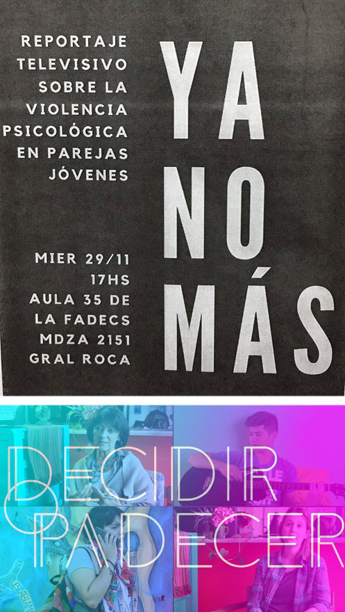 Las cátedras de Periodismo Radiofónico y de Redacción Periodística de la Facultad de Derecho y Ciencias Sociales de la #UNCo queremos invitarles a la charla sobre sexismo en los medios de comunicación que se hará el próximo miércoles 15 de noviembre a las 18 en el aula 13 de la FADECS. |