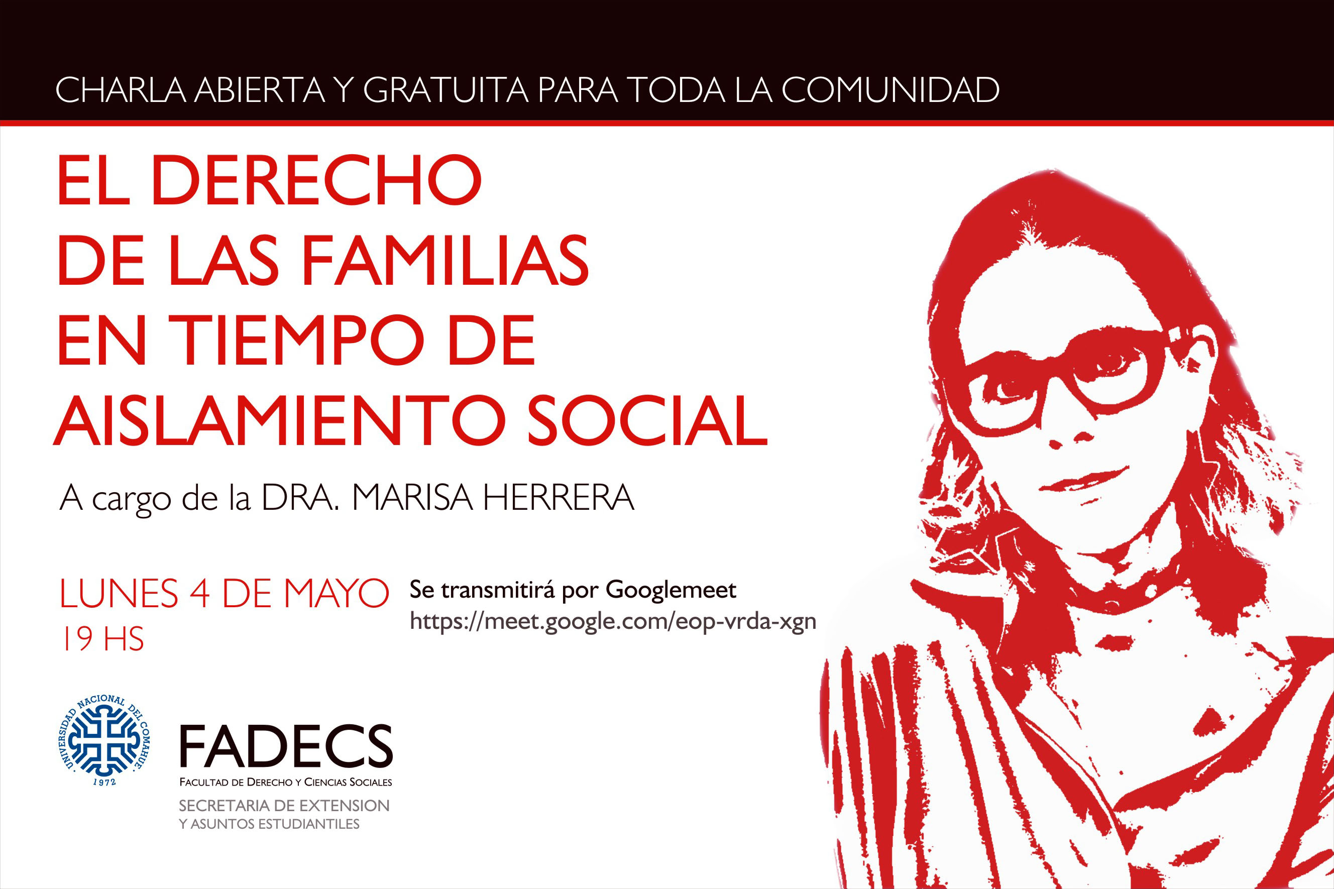La invitación está abierta a docentes, estudiantes, egresados, profesionales liberales, funcionarios públicos, funcionarios judiciales. El ID de la reunión es 594 579 4877 , y la clave es iuscomahue.