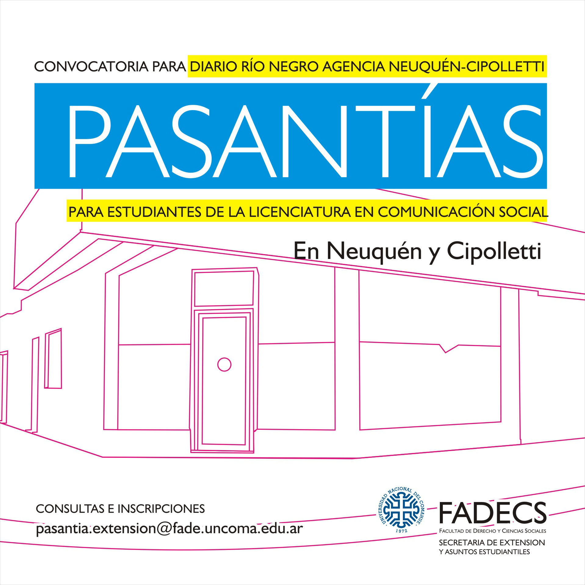 La Secretaría de Extensión de la FADECS convoca a estudiantes de la carrera Licenciatura en Comunicación Social, a fin de realizar pasantías en el Diario Río Negro de General Roca.